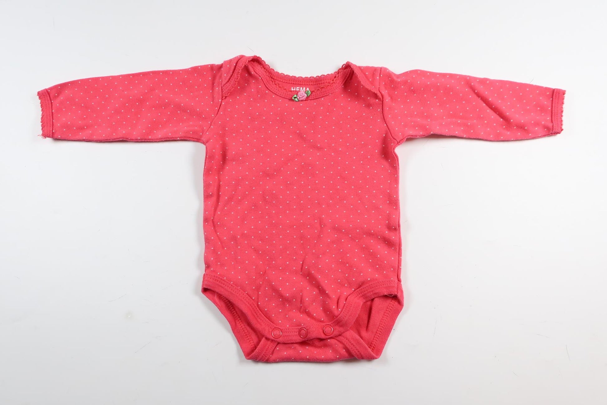 Neon rosa prickig långärmad body från HEMA i storlek 50/56
