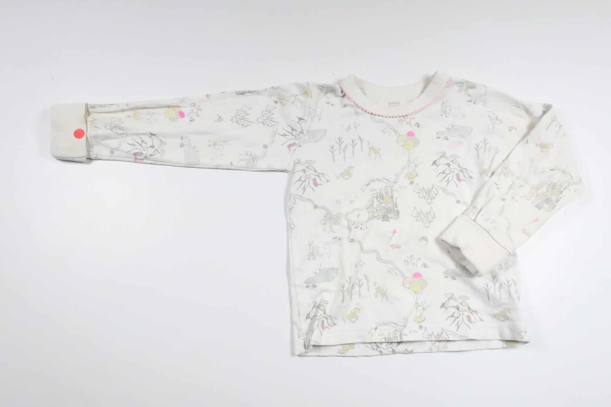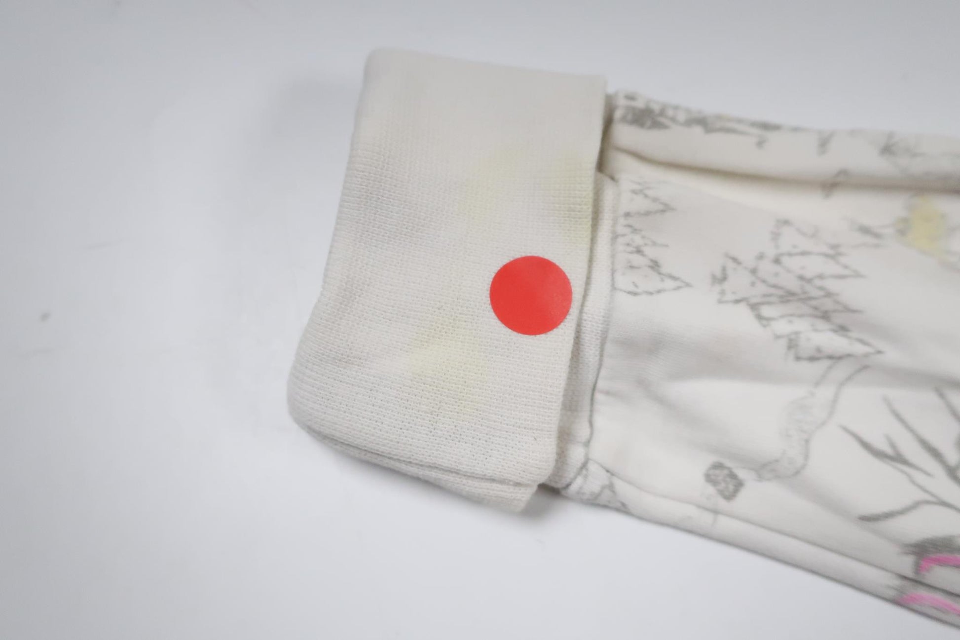 Storleken är 2 år men bedöms motsvara storlek 86 (möjlig 86/92). En gul fläck på ena mudden förekommer, annars i mycket fint skick.