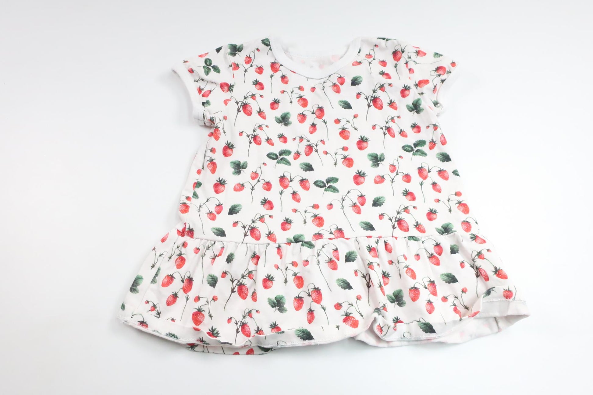 Klänning med jordgubbar från Hemsytt - Storlek 74 - Vit