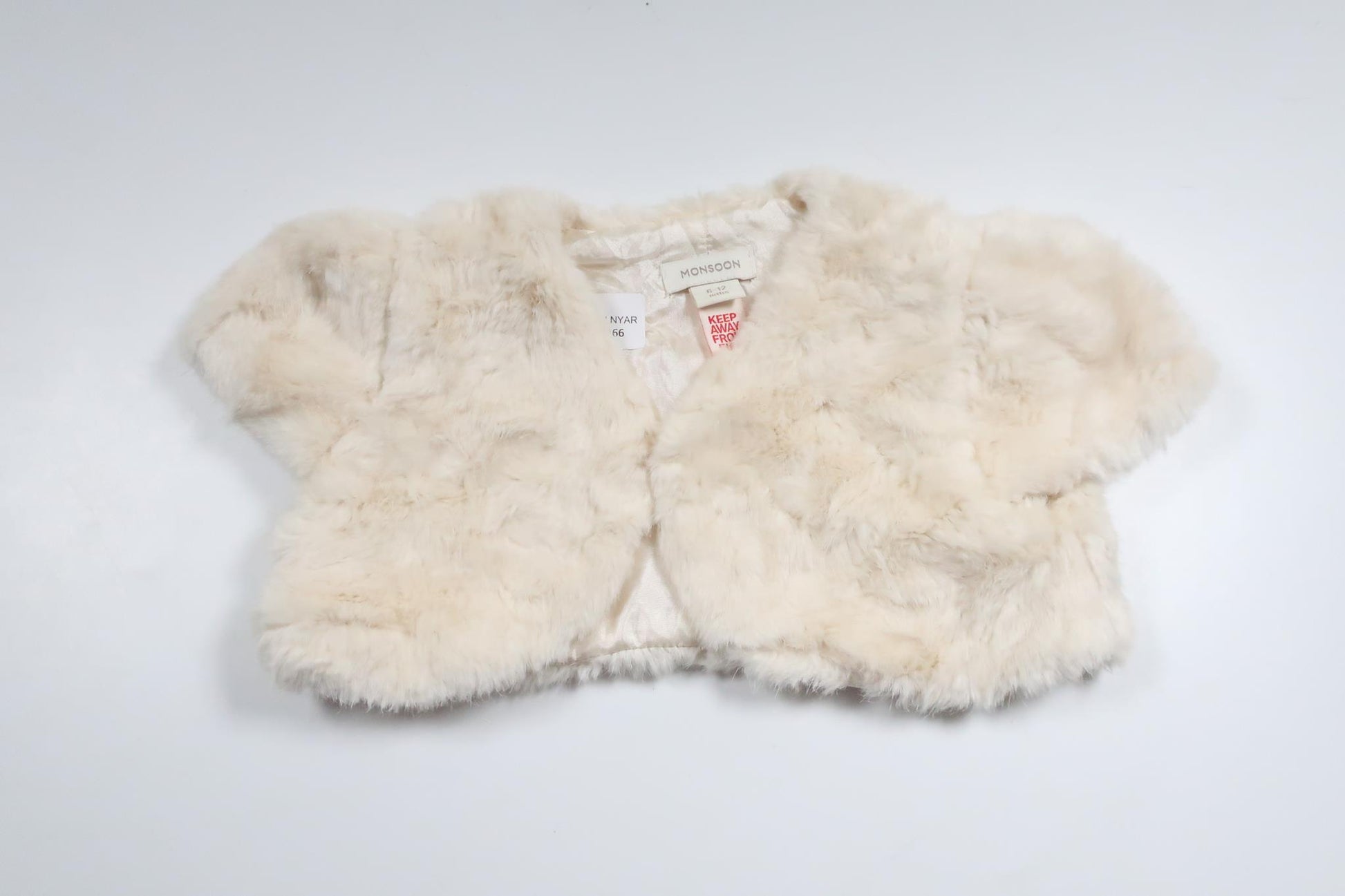 Bolero i fuskpäls från Monsoon - Storlek 74/80 - Benvit