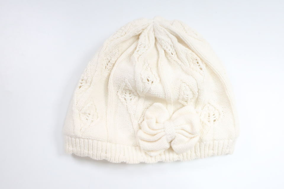 Fleecefodrad stickad mössa från Newbie - Storlek 52/54 - Vit