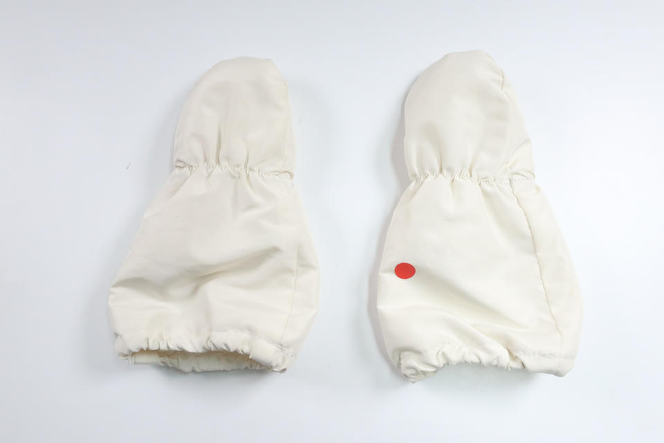 Storleken är 19/21 och bedöms motsvara storlek 74/80. Lite smuts förekommer på ena vante, annars i superfint skick, fodrade