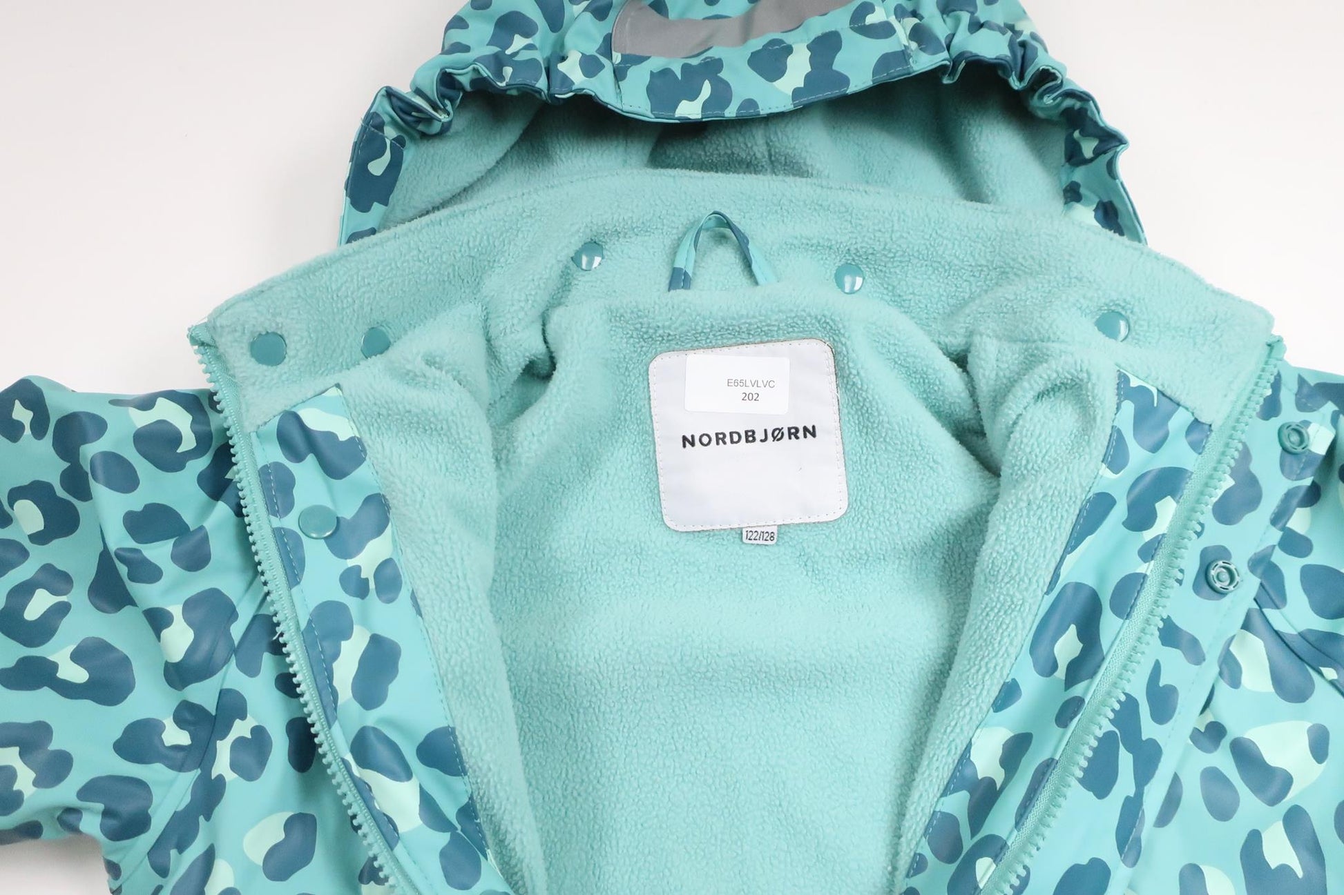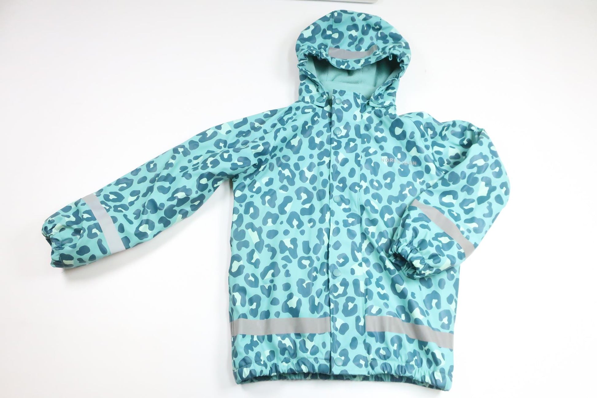 Leopardmönstrad fleecefodrad regnjacka från Nordbjörn - Storlek 122/128 - Blå