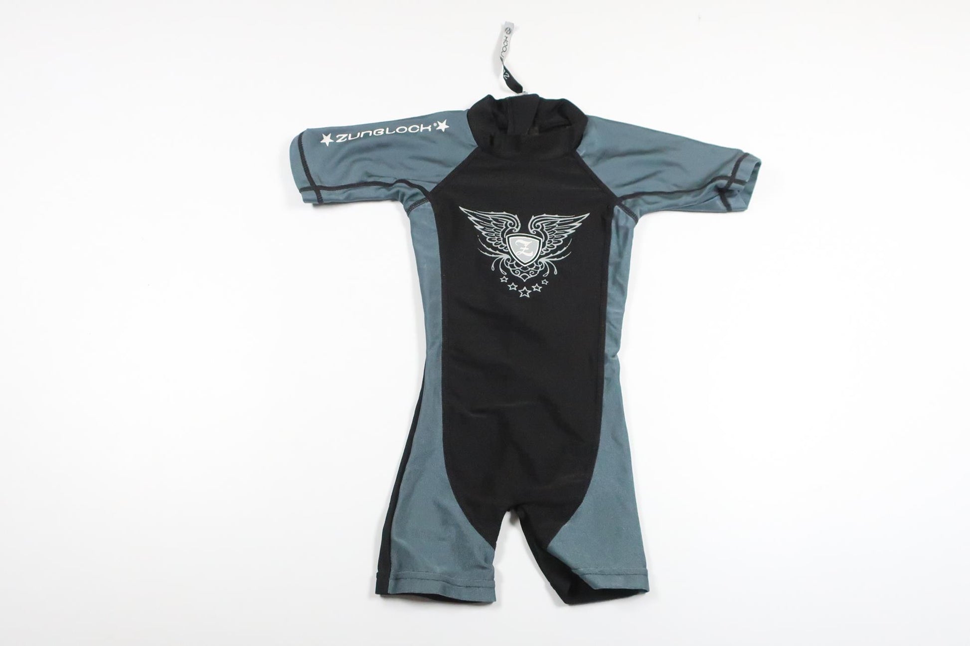 Storleken saknas och bedöms motsvara storlek 74/80. Trycket är lite sprucket, annars i mycket fint skick